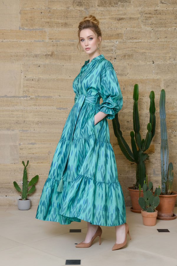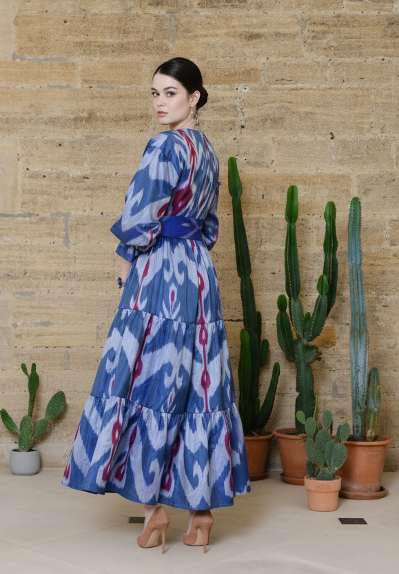 Indulge in the luxury of ikat dresses, lovingly handcrafted in Uzbekistan. Each dress tells a story of tradition and artistry, woven from the finest hand-woven ikat silk and cotton material. Elevate your style with these unique pieces that capture the essence of Uzbek culture and craftsmanship, adding a touch of elegance and sophistication to your wardrobe.