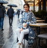 To add an extra refinement, the coat is finished with hand stitching around each part, which designed to complement the ikat fabric, creating a harmonious and visually striking effect.