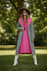 The stunning Black and White Diamonds Silk Ikat Coat almost shines in its beauty. The workmanship and detail in each coat creates an elegant piece that will bring an effortless sophistication to any outfit. The fabric, which is hand embroidered around each part of the print, and the vivid colours combine as a timeless piece of art created by the artisans of Uzbekistan.