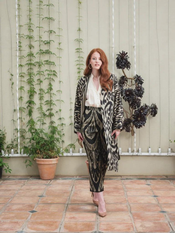 Hand-Woven Silk Ikat Trousers - Cream and Black