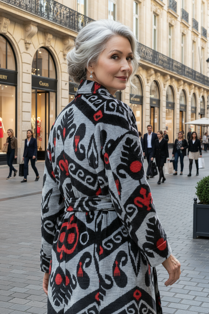 Handwoven Silk Velvet Ikat Shawl Coat - Sevara - 'Love'