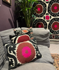 Due to each cushion being produced from a vintage Suzani, each item is completely individual and the colours and patterns do vary in each cushion, which all adds to the unique charm of each piece.